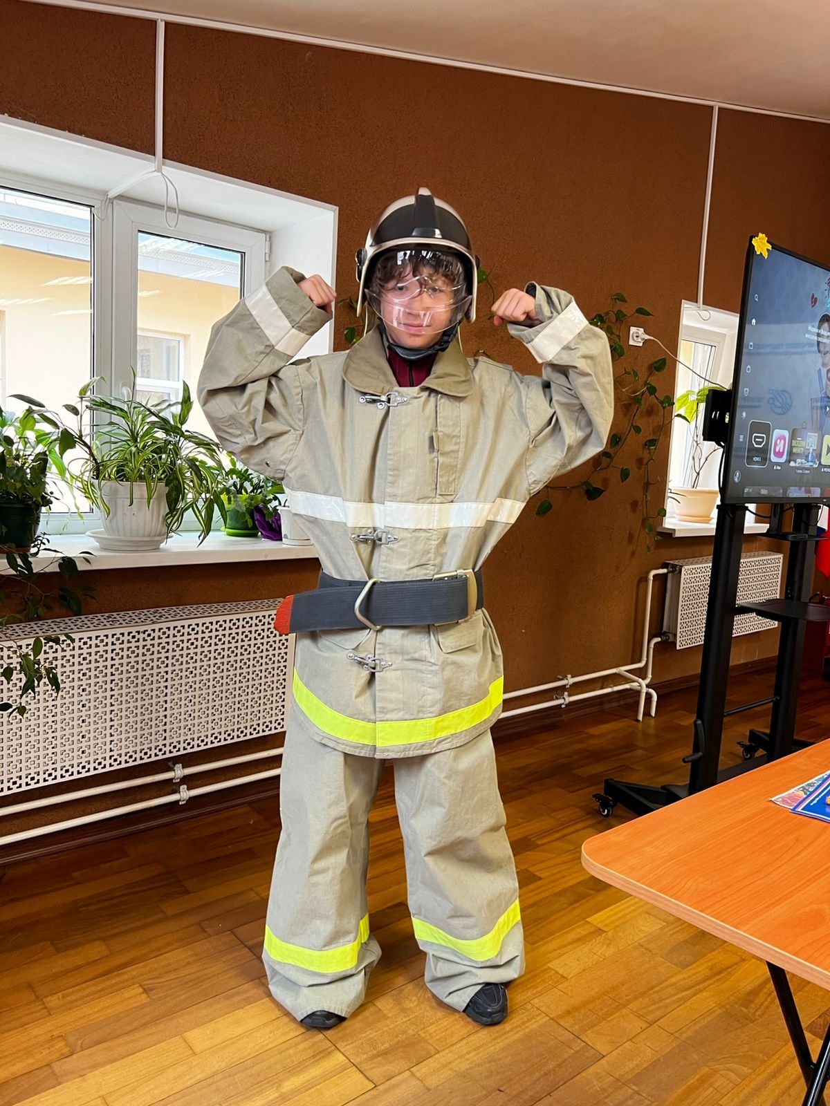 В процессе беседы с пожарными школьники постарались назвать профессиональные и личностные качества, необходимые спасателю и пожарному, работники ПСО Адмиралтейского района провели беседу по действиям при возникновении чрезвычайной ситуации в квартире, школе и местах массового пребывания людей. Так же была организована интерактивная площадка ,где ребята охотно примеряли боевую одежду пожарного, «самоспасатель» и учились вязать пожарные узлы.