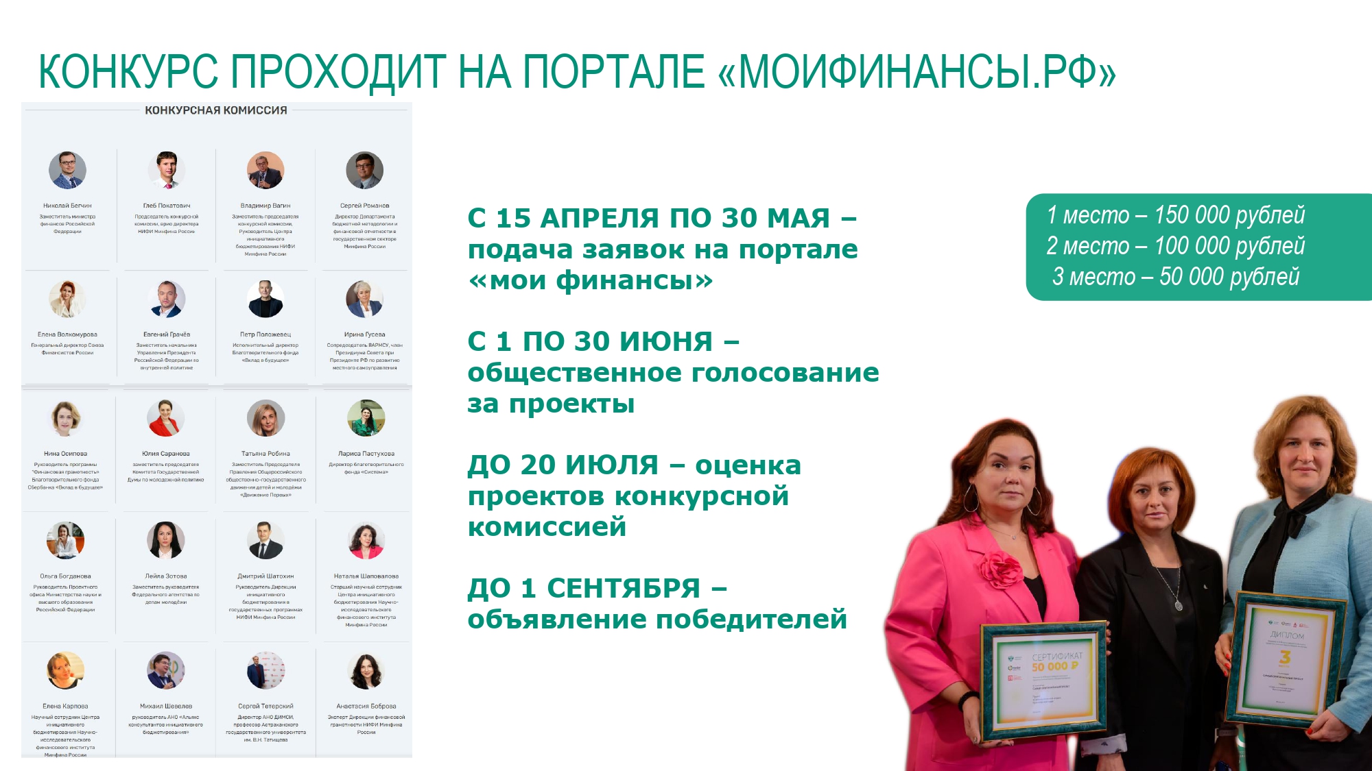 Старт приема конкурсных заявок – 15 апреля 2026 г. на портале «Мои финансы».