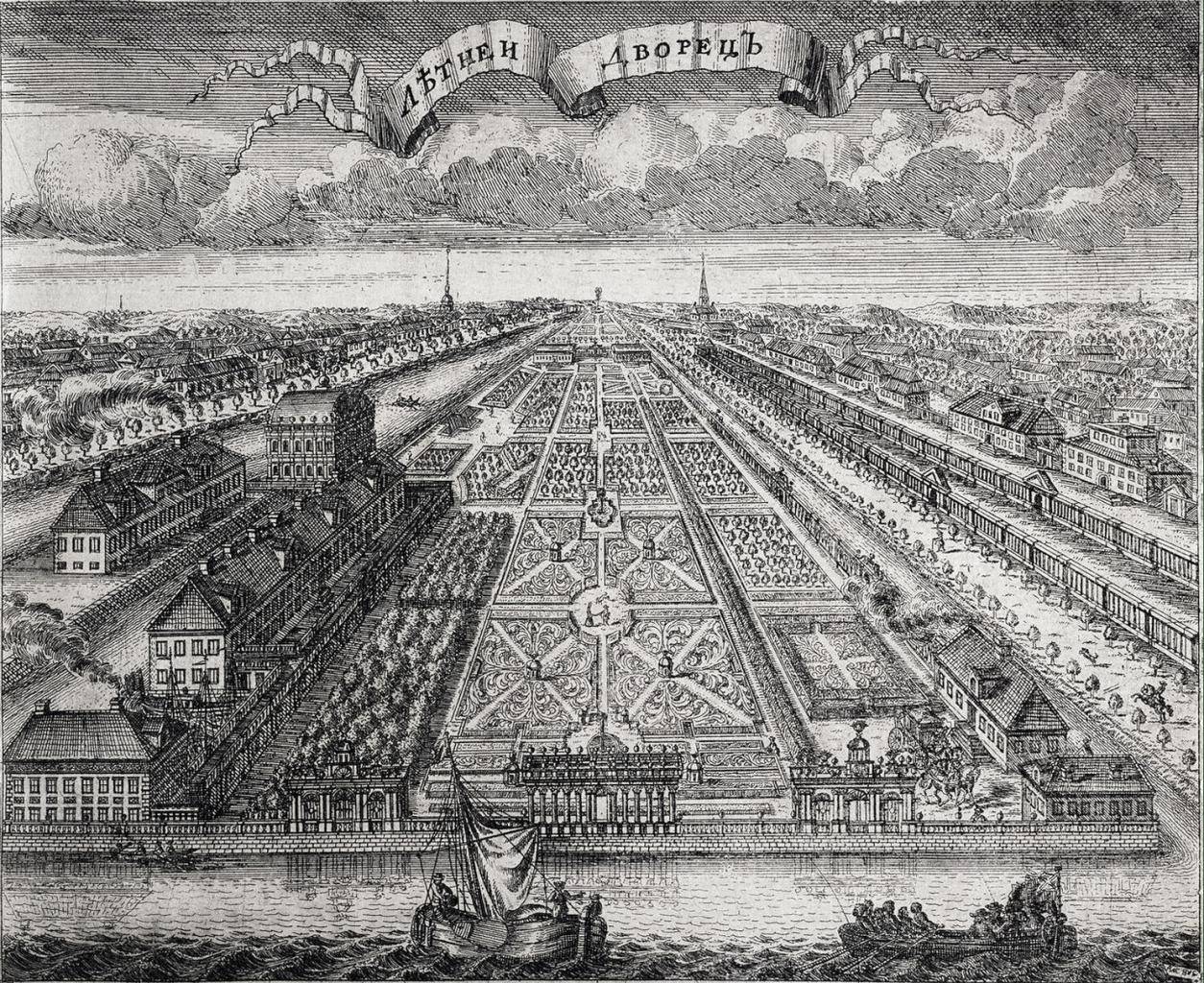 А.Ф. Зубов. Гравюра «Летний дворец Петра I и Летний сад в Санкт-Петербурге». 1716 г.