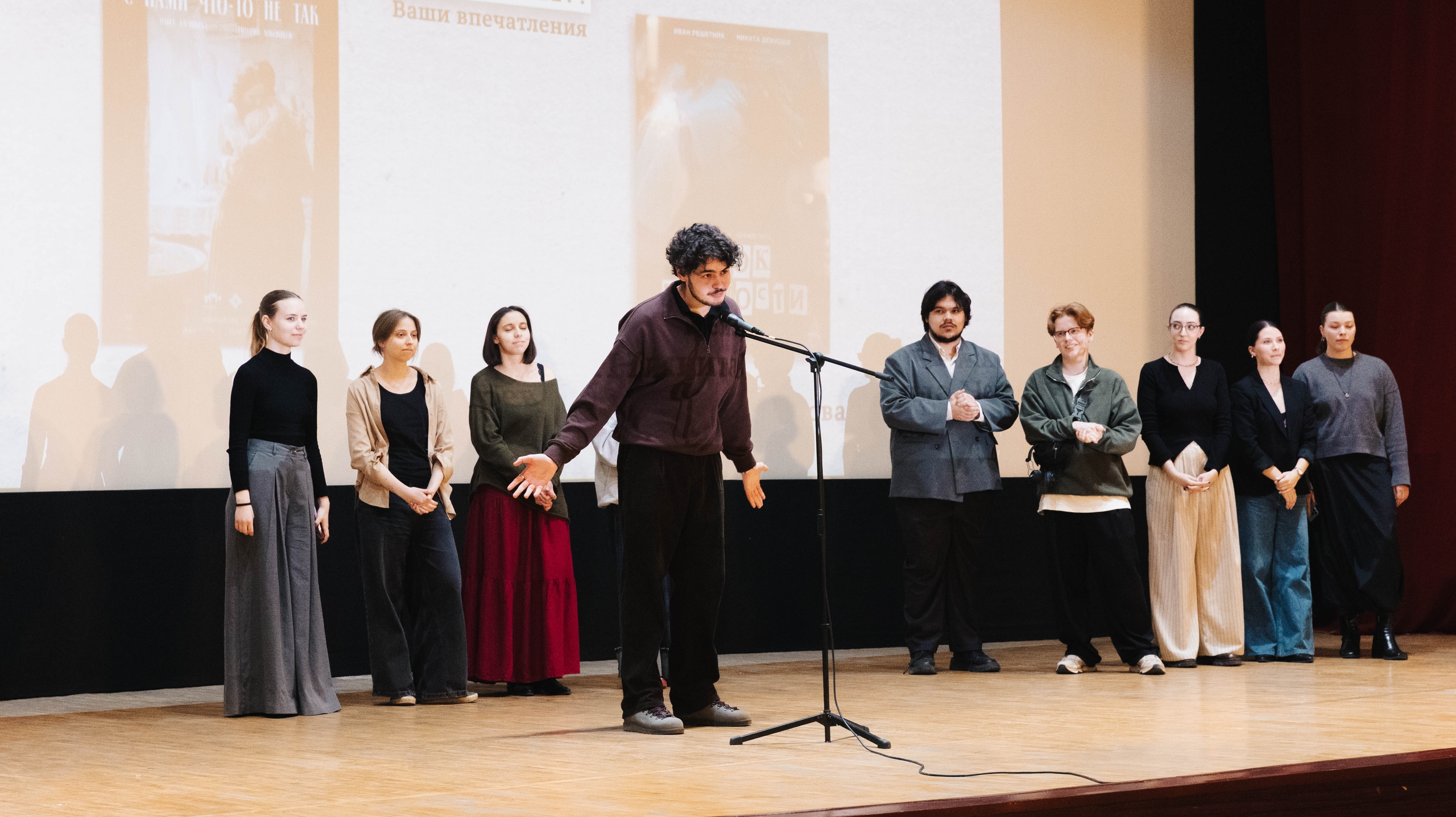 «Я больше, чем уверен, что это будет интересно широкому зрителю. Потому что кино меняется, меняется подход к работе со студентами. Конечно, мы ориентируемся на зрителя. Не на фестивальную публику, а именно находиться в диалоге со зрителем. Вызвать сопереживание в фильмах, узнать себя в фильмах, увидеть свои мысли, эмоции», - такую задачу обозначил руководитель мастерской Артем Антонов. И сработало. Зритель искал и главное находил. Многие остались (показ завершился после 22 часов), чтобы поделиться эмоциями и задать интересующий вопрос.