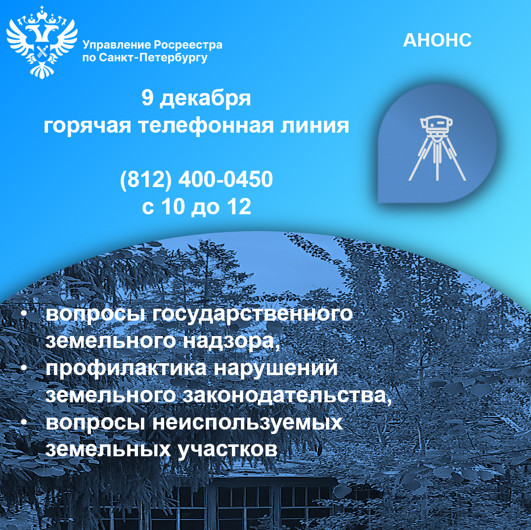 Управление Росреестра по Санкт-Петербургу проводит горячую телефонную линию по вопросам: